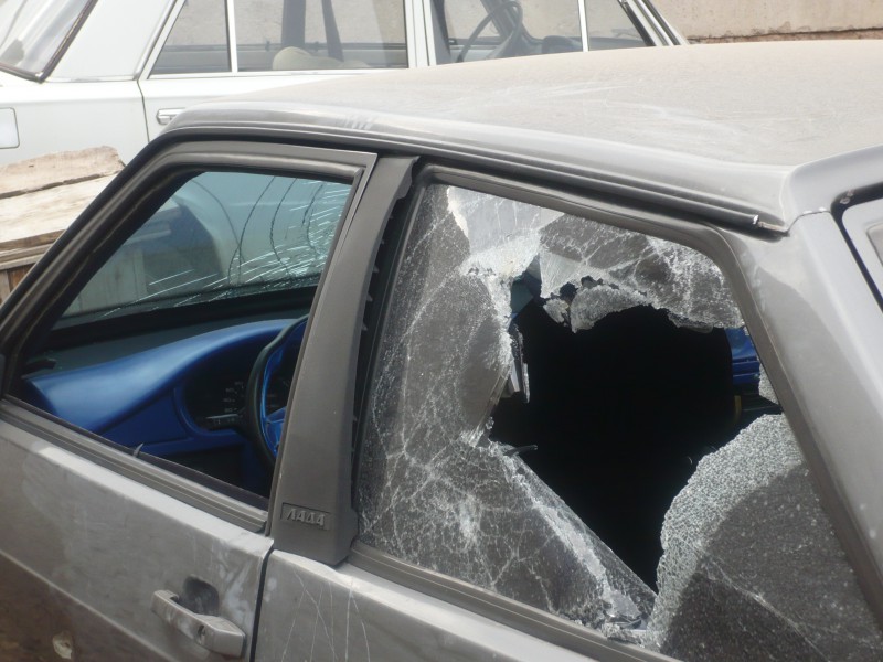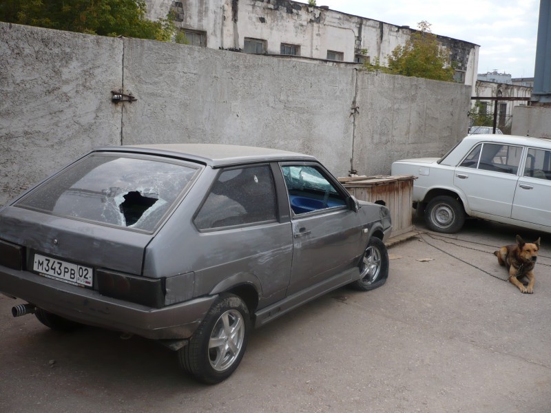 (На фото: Антон Савейкин, автомобиль ВАЗ-2108 со следами повреждений)