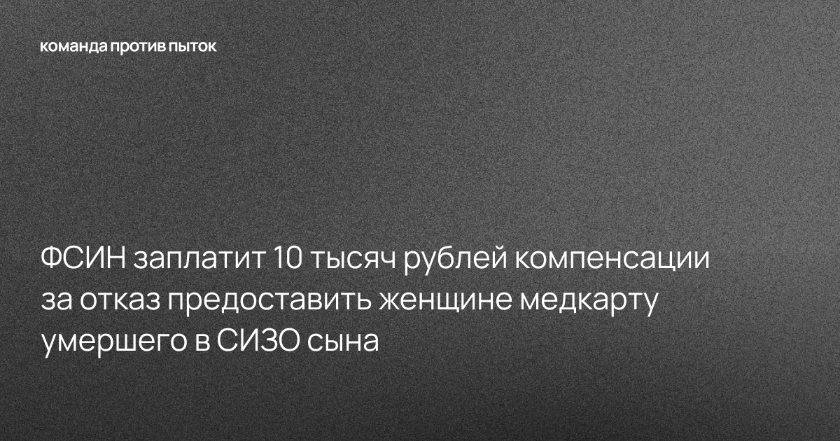 ФСИН заплатит 10 тысяч рублей компенсации за отказ предоставить женщине медкарту умершего в СИЗО сына