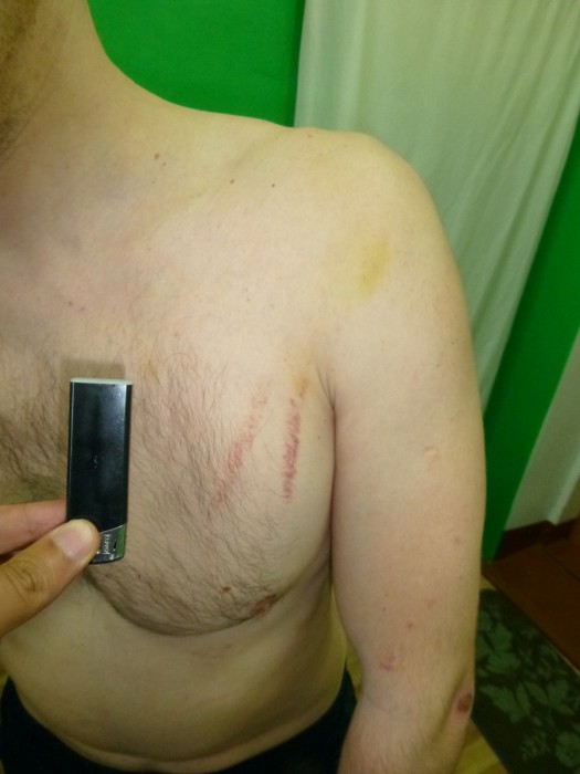 13 июня: «ко мне зашли двое осужденных в масках, схватили меня за руки, за ноги, унесли, надели мешок на голову, унесли опять в первую камеру, где карантин, опять привязали ноги, спереди руки замотали скотчем, растянули опять меня на столе, опять раздели меня, опять начали меня заставлять отказную написать от своих жалоб. «Сейчас мы тебя за это е…ать будем». Начали силой вгонять мне палку в задний проход, резко силой. Я говорю: «Хоть бы, ну, лучше бы убили, застрелили при попытке к бегству, я не знаю, задушили, списали бы на тромб. Зачем Вы так делаете, мне не хочется жить после всего этого. Я не мог от боли ничего говорить, только мычал… После того, как они поняли, что уже бесполезно со мной разговаривать, потому что я ничего не соображал от боли, они меня отвязали, я упал на пол, они вылили мне на голову таз воды холодной, чтобы я пришел в себя. Заставили обтереть кровь, которая у меня текла из анального отверстия, своими трусами».http://www.youtube.com/embed/hO0D4r2qJkE
